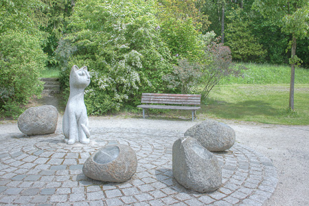 Die Katzenskulptur in der Herrmann-Müller-Anlage